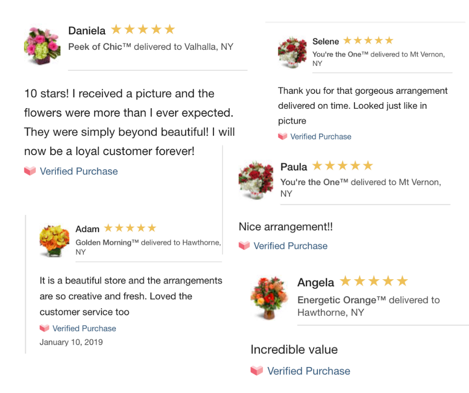 Having a repertoire of good reviews under their belt helps your favorite local florist attract new Gifters and enhance their online reputation. It also helps other shoppers make informed decisions when choosing a florist to shop with.