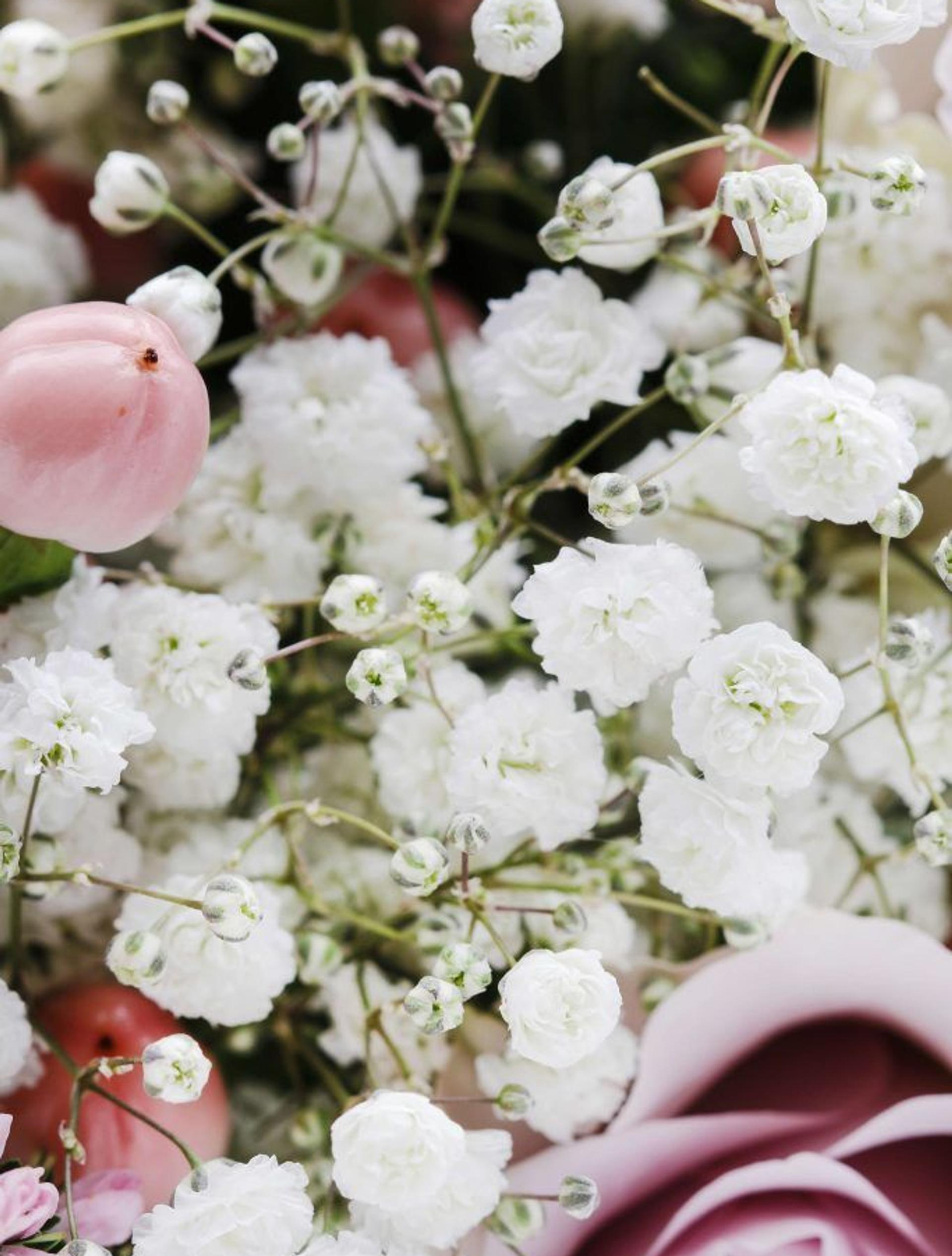 What’s that small, white, puffy flower in the bouquet? Odds are it’s baby’s breath.