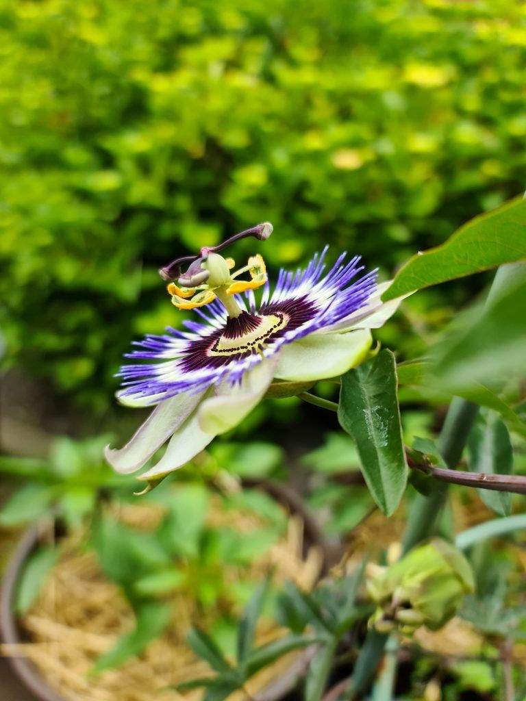 The passion flower is quite hardy in some climates and usually grows on a trellis or fence. In climates where they’re not so hardy, you’ll find them grown in pots and moved indoors for the winter.