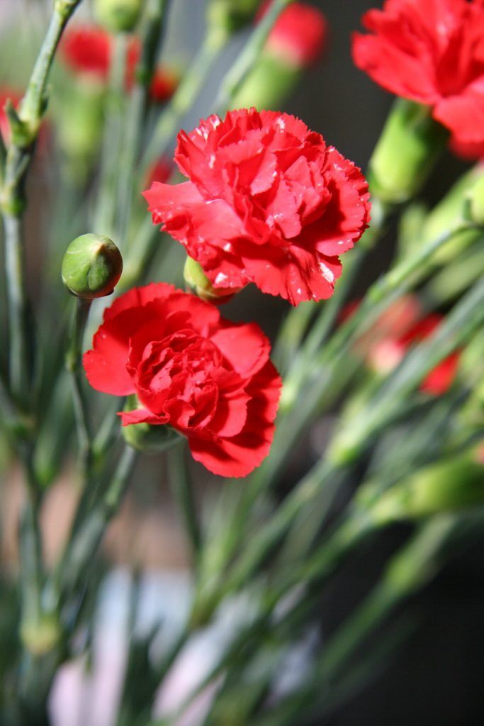 They can be grown from seed or cuttings. To successfully grow carnations from a cutting, you’ll need to cut a live stem (at least 4″ long) from a healthy carnation plant. Make your cut right below a leaf node, and remove the leaves from the bottom half of the stem. Fill a container with coarse sand, push the stem about halfway into the container, and make sure the sand stays moist, and the stem gets consistent indirect sunlight. Then, wait for the magic to happen. Your stem will eventually grow new roots and a fresh flower.