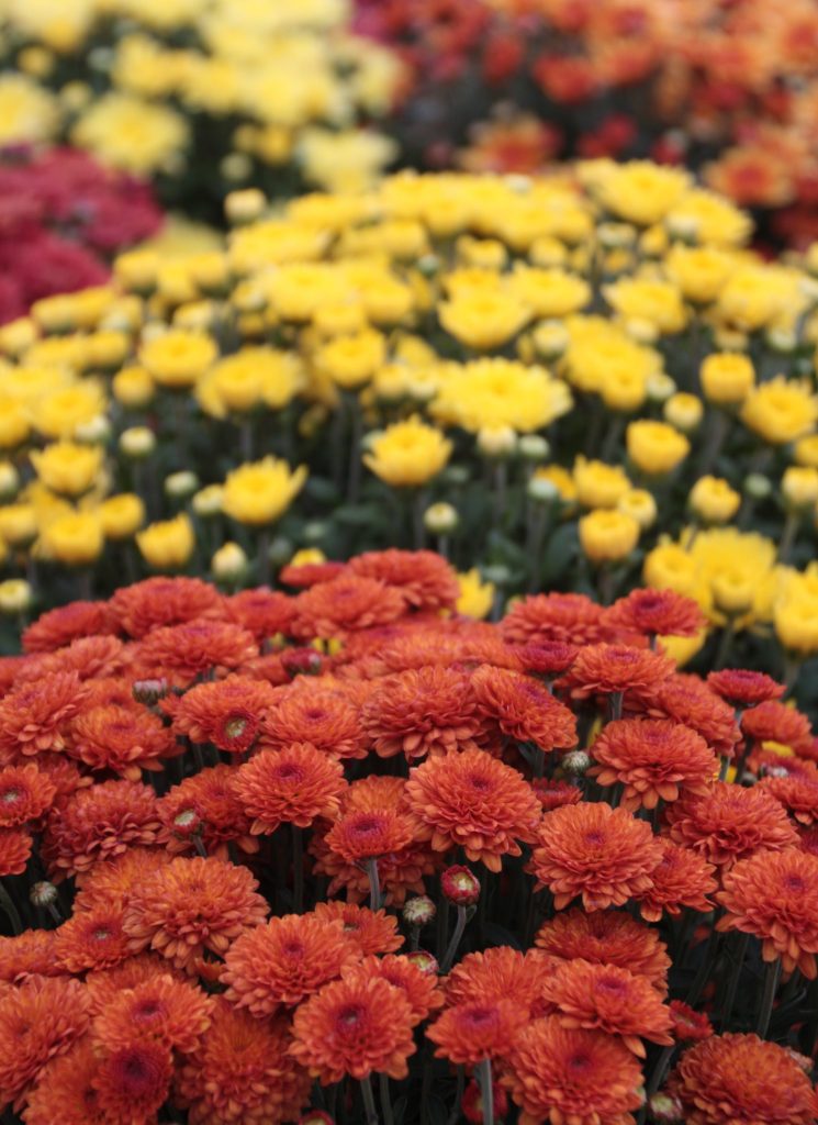 Let’s say you’re one of the lucky ones that get to work from home, and during a crisp fall afternoon, you see some mums in your backyard that are just begging to be part of your indoor floral arrangement… don’t do it! We know it’s tough to resist, but the best time for you to cut mums is in the early morning or late evening because the flowers will be fully hydrated. Cut mums just before the buds are fully open, as these flowers last longer than those already in full bloom. Using a sharp knife or shears, cut the stems a little longer than necessary to allow for recutting. Don’t use dull tools, which tear the tissue of the stem and shorten the life of the flowers. To prevent wilting, place the cut flowers in a bucket of warm water immediately.